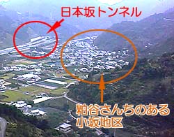 糟屋さんちのミカン畑から、自宅のある小坂地区を臨みました。 |